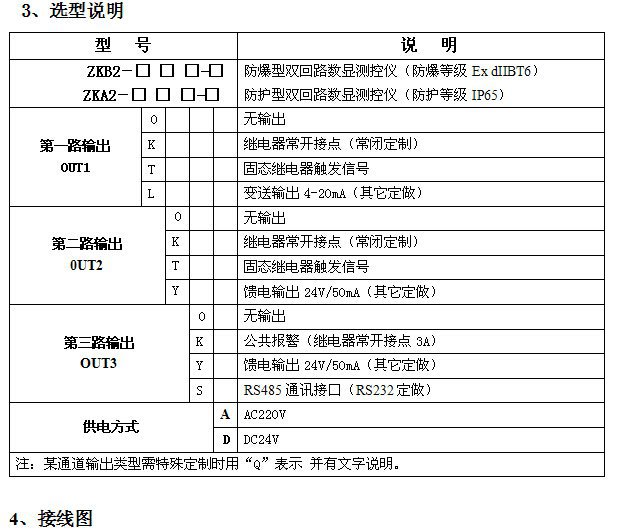 ◇ 控制报警输出:继电器触点容量 AC220V/3A